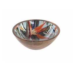 Hoge Kwaliteit Bloemmotief Mango Hout Decoratieve Kom Mango Hout Serveerschaal Handgemaakte Houten Slakom